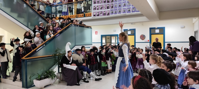 Como cada año, Olentzero y Mari Domingi han visitado Ermitaberri. Es un día que comienza cargado de emociones desde par de mañana: la recepción en el porche del colegio, a continuación los cantos con todos los alumnos/as dentro en el hall principal, el reparto de regalos, las fotos… Nervios, disfrute, abrazos, miradas… Hemos tenido de todo.